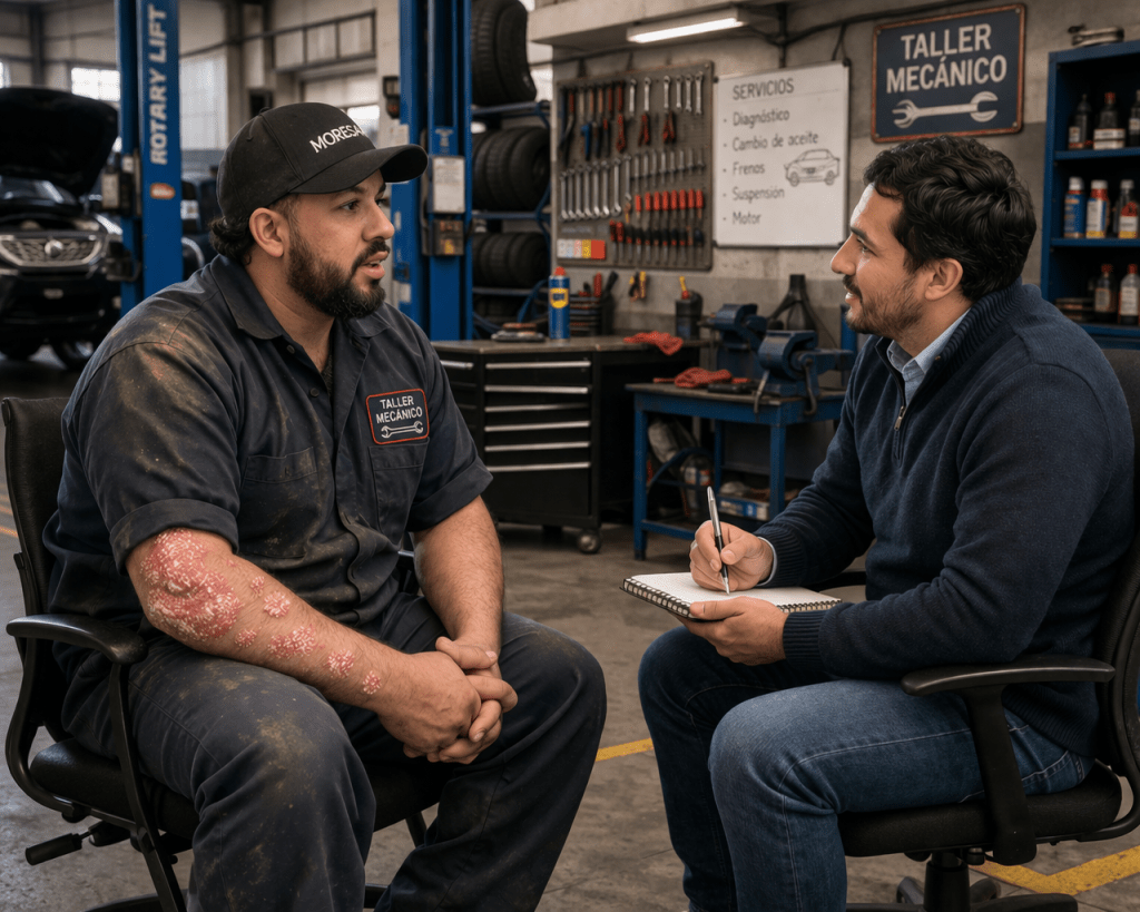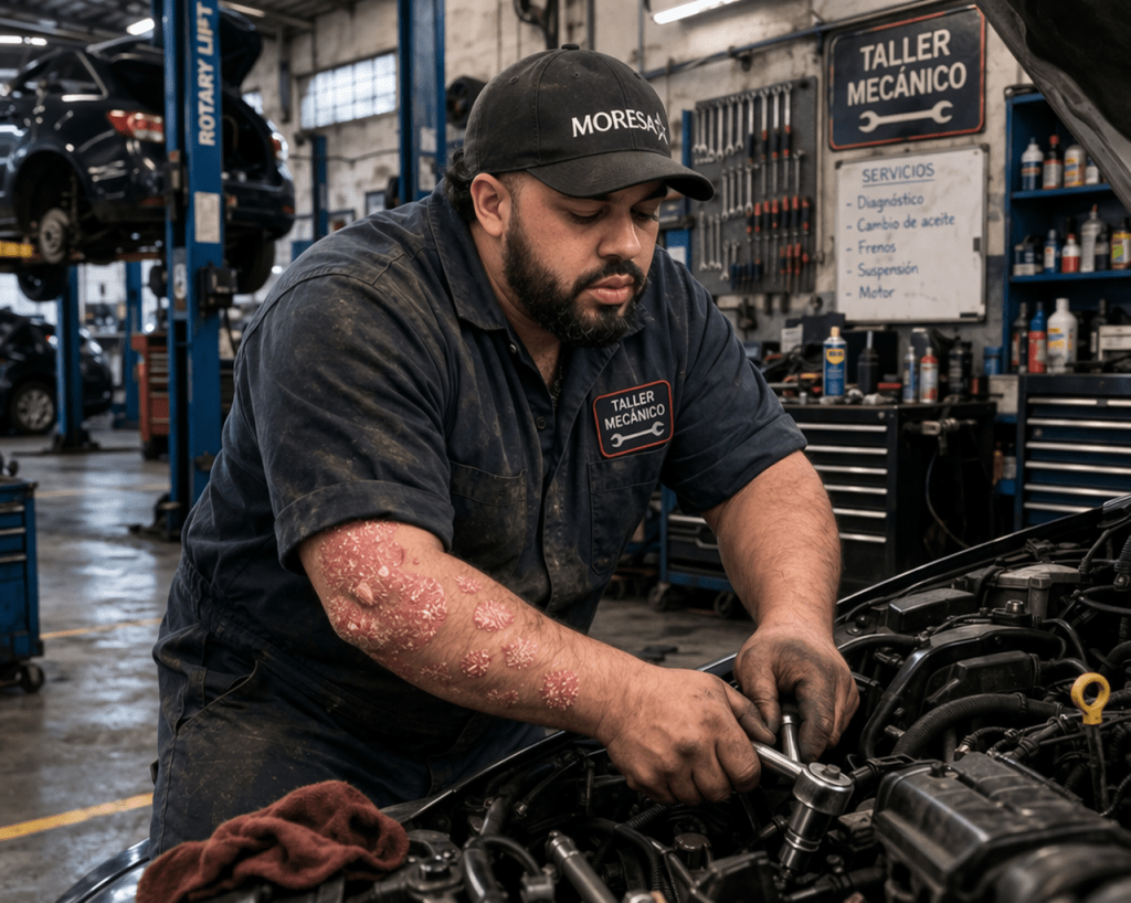 Todos los días, Alberto entra a trabajar entre motores, herramientas y piezas pesadas. A sus 36 años, su labor en una rectificadora de motores automotrices en la Ciudad de México exige fuerza, precisión y resistencia. Pero desde hace más de una década, sus jornadas no solo implican esfuerzo físico, sino también la convivencia con el dolor y los desafíos de la enfermedad psoriásica.