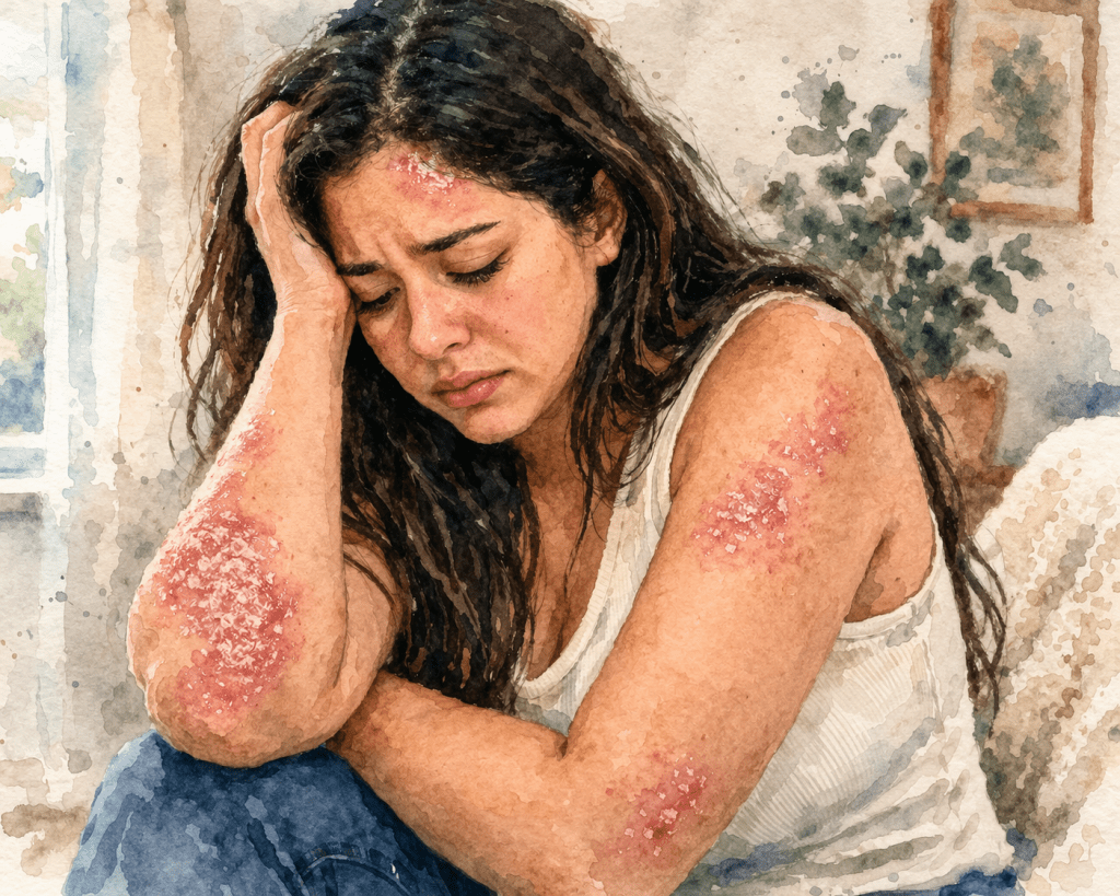 La psoriasis no es solo una enfermedad de la piel. Es una condición inflamatoria crónica que también puede afectar cómo una persona se siente consigo misma, con su cuerpo y con los demás. Vivir con brotes, lesiones visibles o síntomas persistentes, como picazón o dolor, puede tener un impacto emocional significativo.